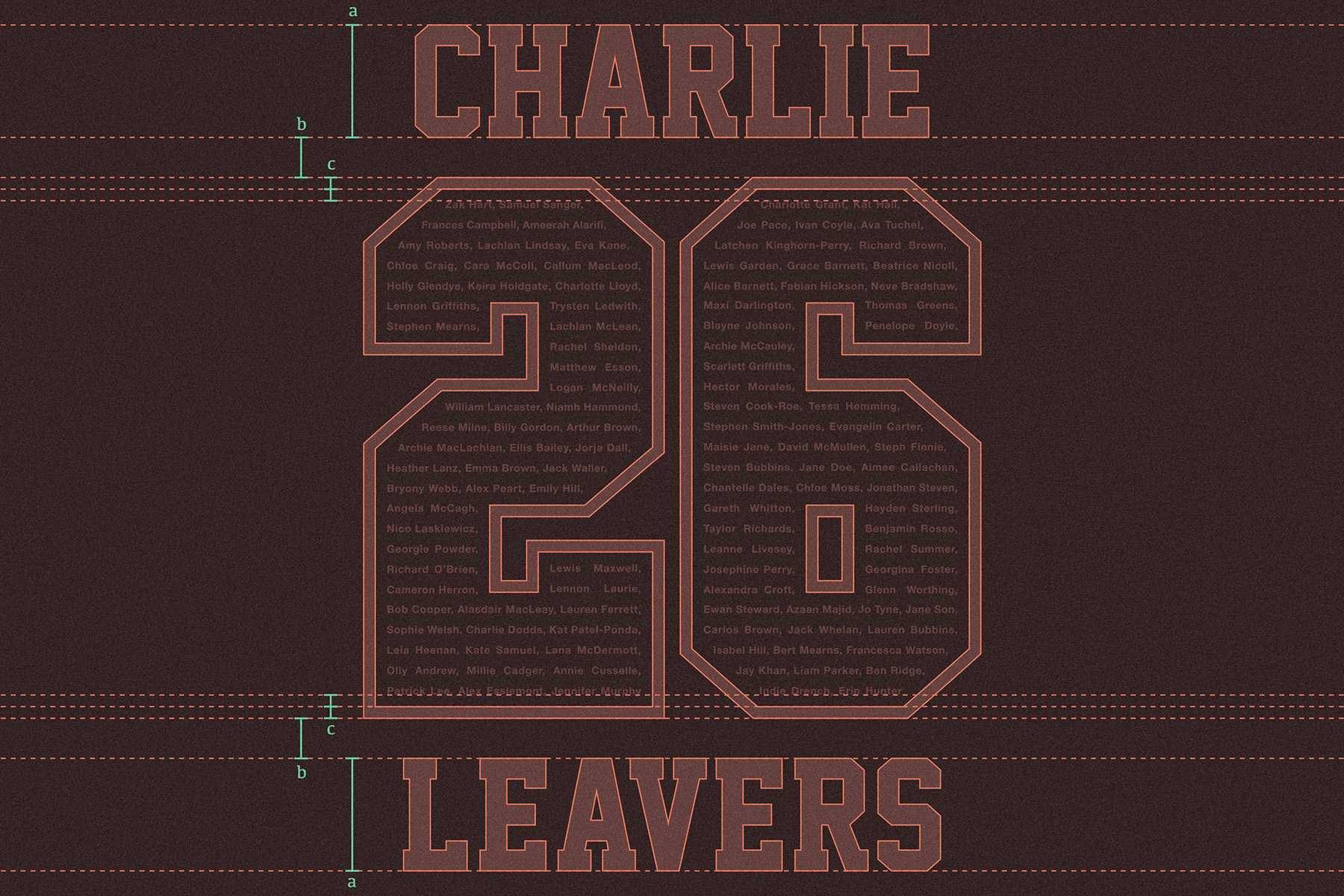 Achieving harmony in design requires precise margins and balanced spacing. We pay meticulous attention to the proportionality of each element, ensuring that the ‘26’, nicknames, and ‘Leavers’ text are perfectly aligned. This mathematical precision results in a polished and professional look that stands out.